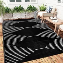 • Pcinfuns Plastic Straw Rug,5'x8' Outdoor Waterproof Patio Rugs Foldable Reversible Camping Mat for Rv, Deck, Porch, Picnic, Beach, Balcony,Black & White