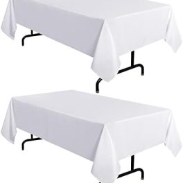 • sancua 2 Pack White Tablecloth 60 x 102 Inch, Rectangle 6 Feet Table Cloth - Stain and Wrinkle Resistant Washable Polyester Table Cover for Dining Tables, Buffet Parties and Camping