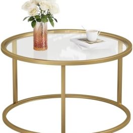 • Sale! SAYGOER Small Glass Coffee Table Round Gold Coffee Table for Small Space Modern Simple Center Table with Gold Frame for Living Room Home Office, Easy Assembly