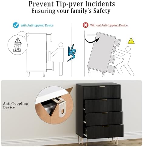 Elevate your home organization with the Masupu 4 Drawer Dresser, a versatile storage solution that blends style and functionality seamlessly. Designed to fit into any space, this tall dresser features a modern black stripe design that adds a chic touch to your bedroom, living room, closet, or hallway.